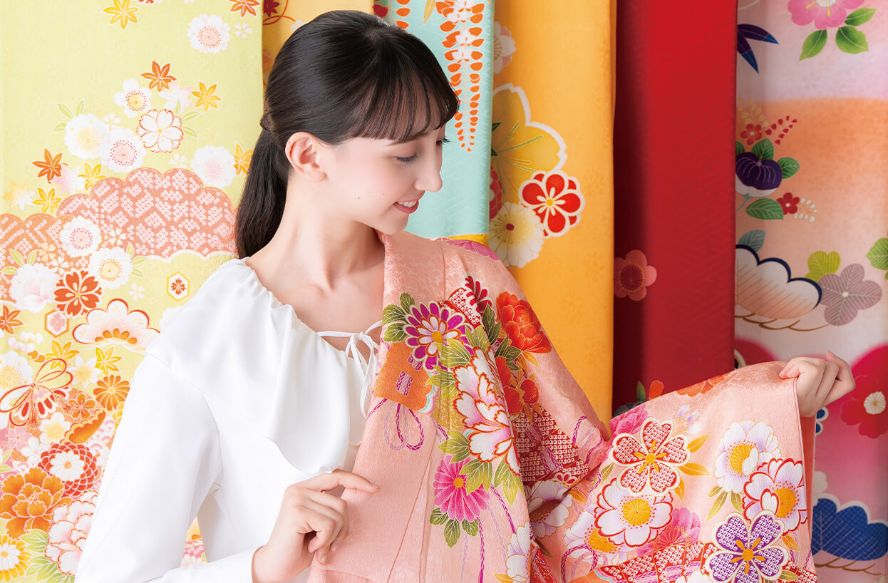 アレーズでは晴れの日にふさわしい高品質な衣裳を、品揃え豊富にお届けしています。京友禅の名匠の作品を始め、古典柄を中心とした和装の数々から、お好みの一着をお選びいただけます。